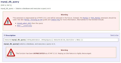 mysql_db_query() เพิ่งรู้นี่แหละว่า ไอ้ฟังชั่นนี้มันถูกยกเลิกไป ทั้งๆ ที่ตัวเองก็ไม่เคยใช้มันหรอก เพราะไม่เห็นความจำเป็นอะไรต้องใช้มันเลย