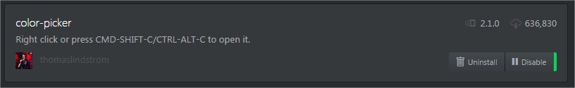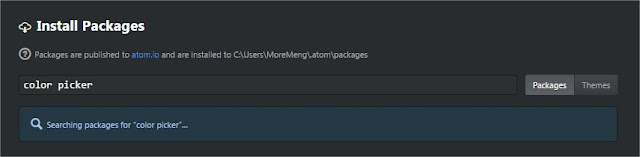 2. เลือกไปที่ install จากนั้นพิมพ์ ในช่อง Search Packages เช่น “color-picker” ดังภาพ